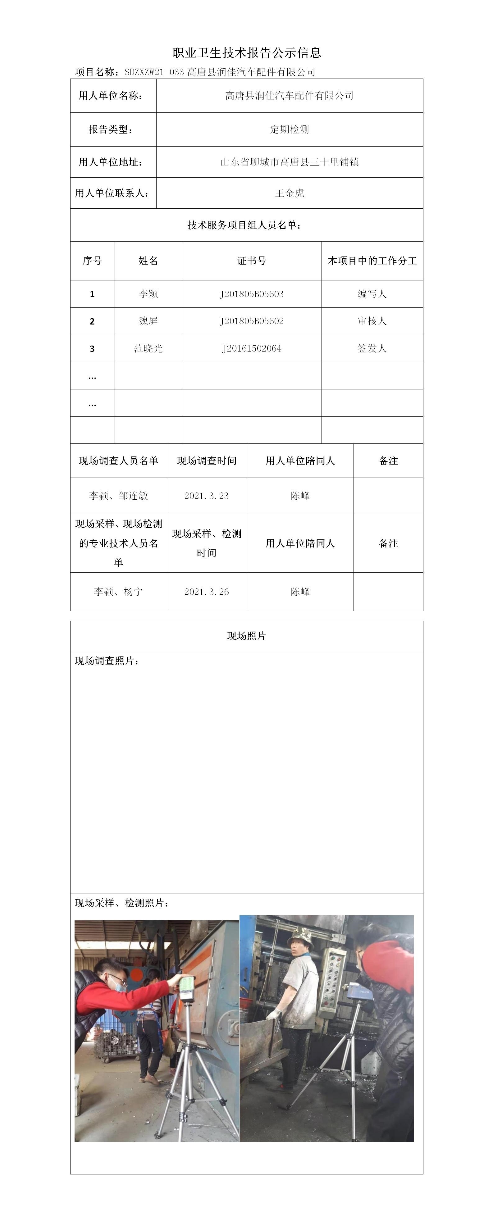 職業(yè)衛(wèi)生報(bào)告公示信息 高唐縣潤佳汽車配