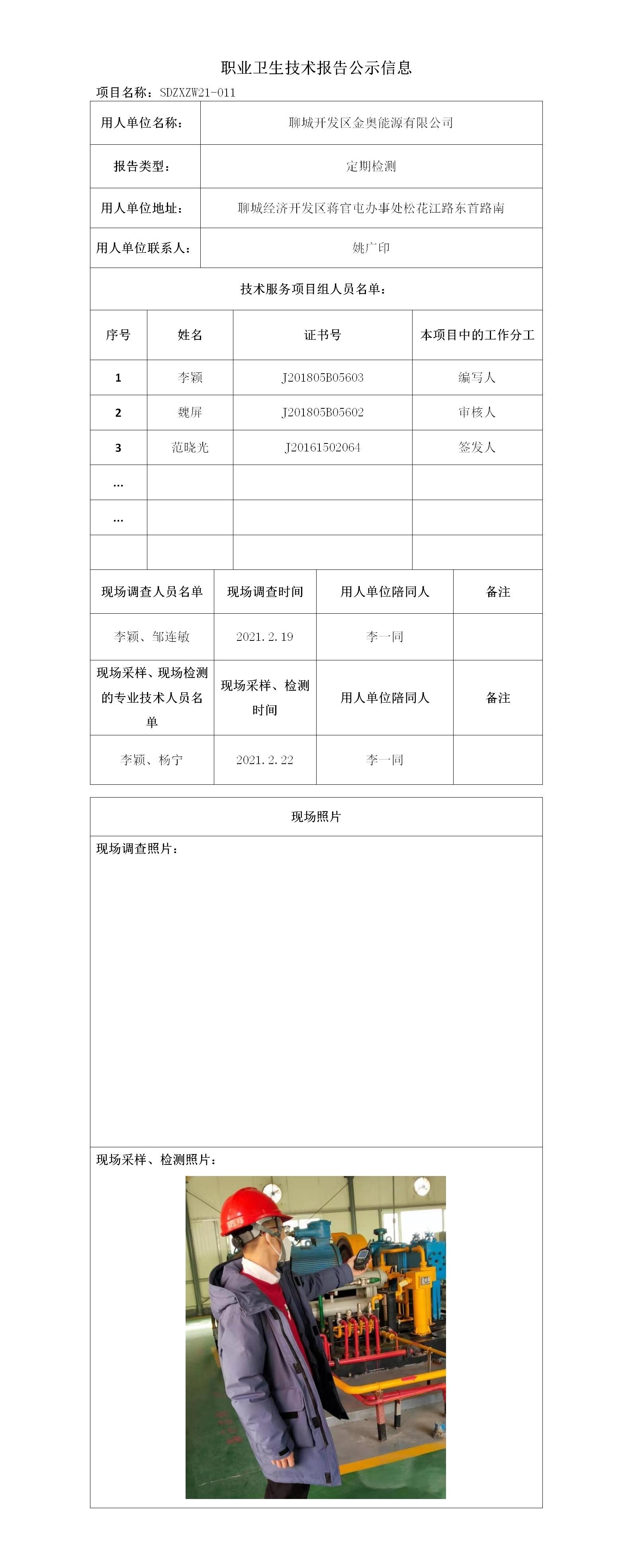 職業(yè)衛(wèi)生報(bào)告公示信息 聊城開發(fā)區(qū)金奧能