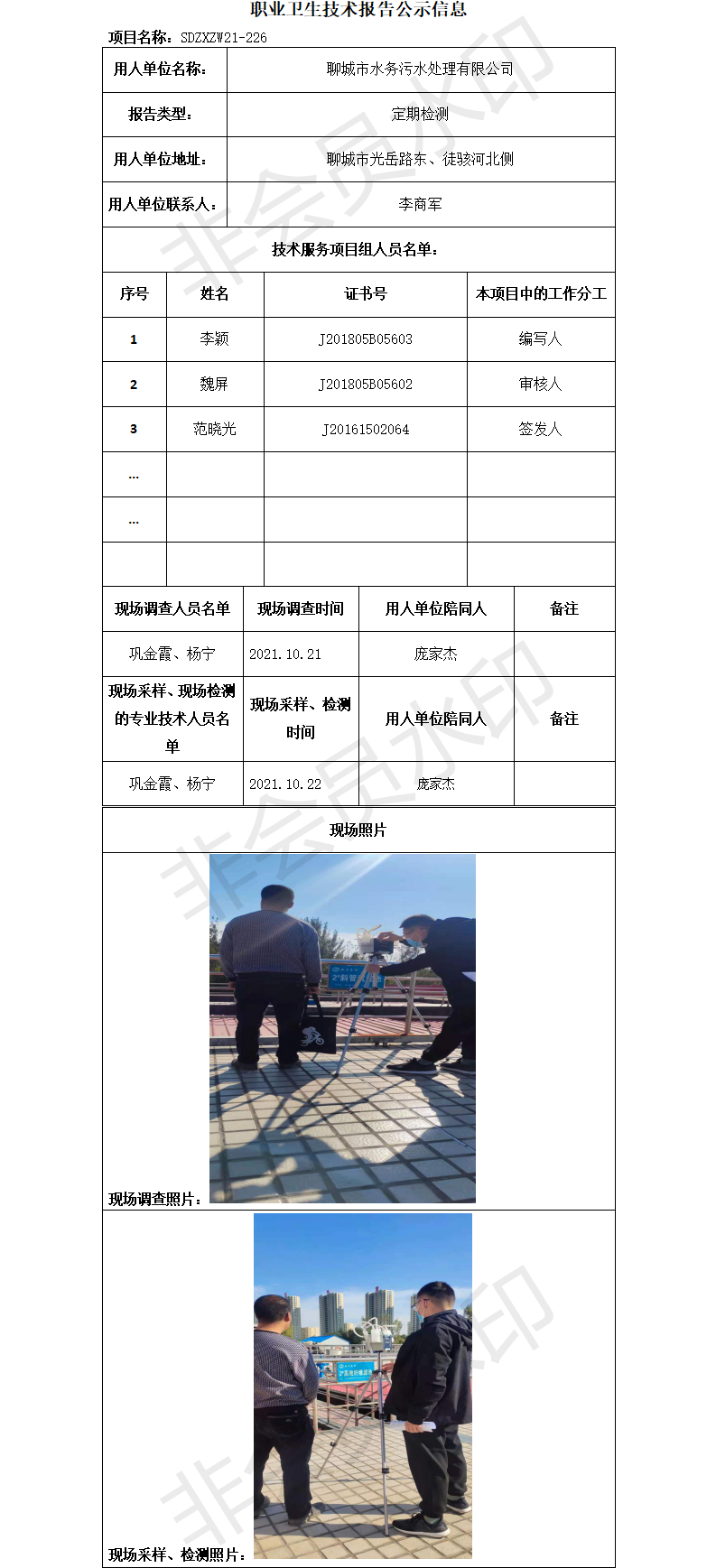 CopyRight 山東職健檢測技術有限公司 地址:聊城市經濟技術開發區研發路現代農業生態示范園內